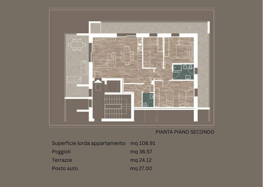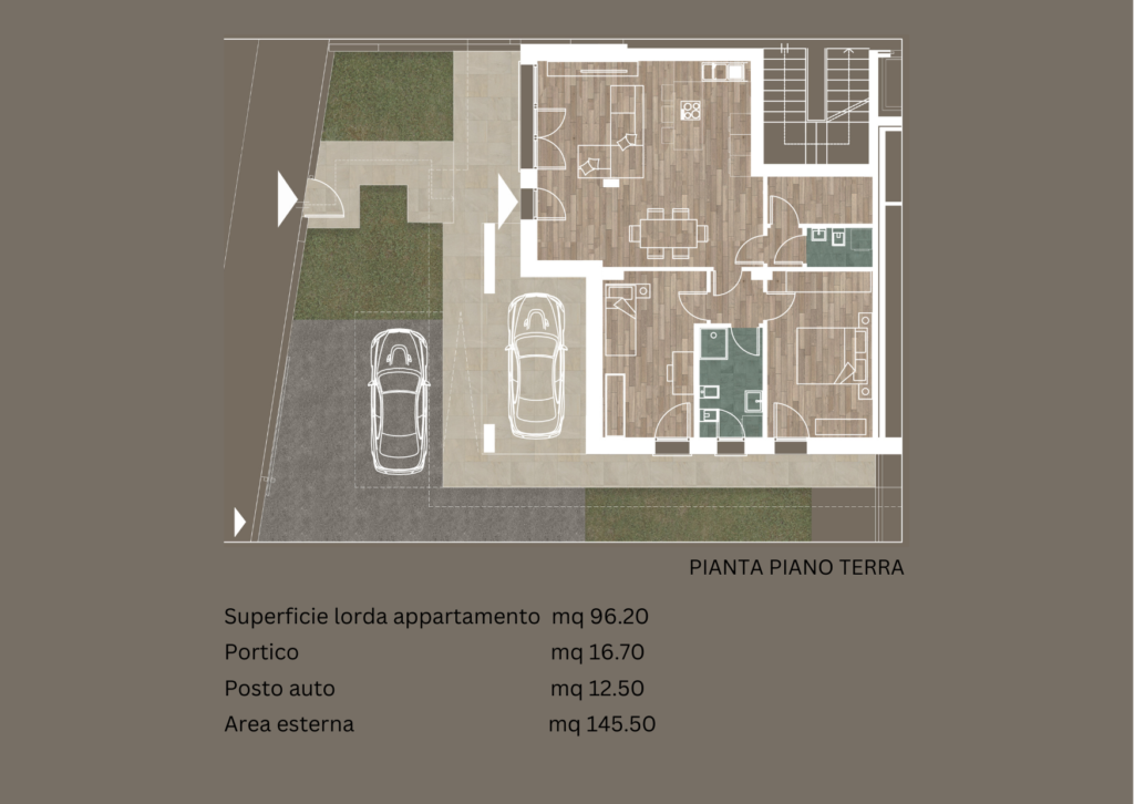 Il progetto si distingue per uno stile architettonico contemporaneo, linee pulite e spazi studiati per garantire funzionalità e luminosità in ogni ambiente. Ogni unità abitativa è dotata di posto auto privato, assicurando praticità e comodità nella vita quotidiana.